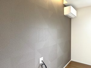 お施主様チョイスのクロスがどんどん貼られていき、